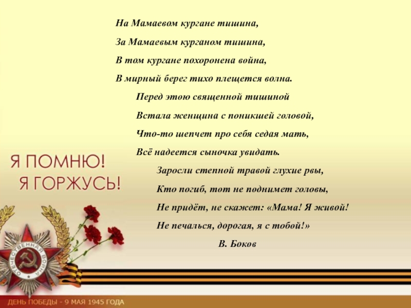 Слайд 4На Мамаевом кургане тишина,