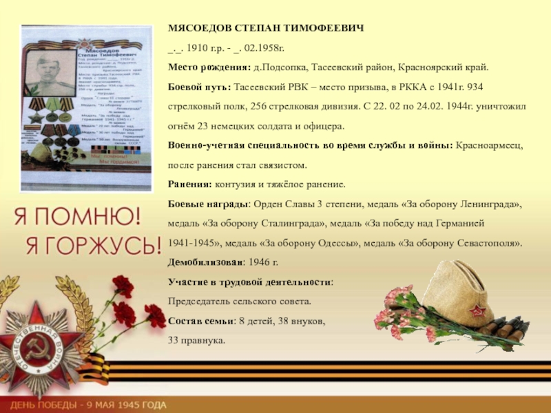 Слайд 17МЯСОЕДОВ СТЕПАН ТИМОФЕЕВИЧ