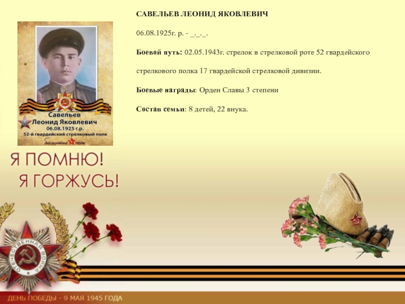 Слайд 21САВЕЛЬЕВ ЛЕОНИД ЯКОВЛЕВИЧ
