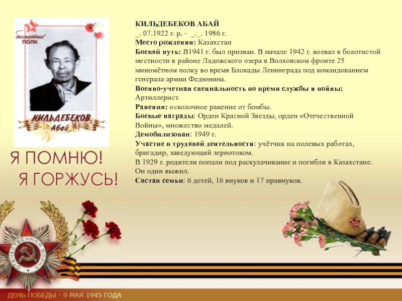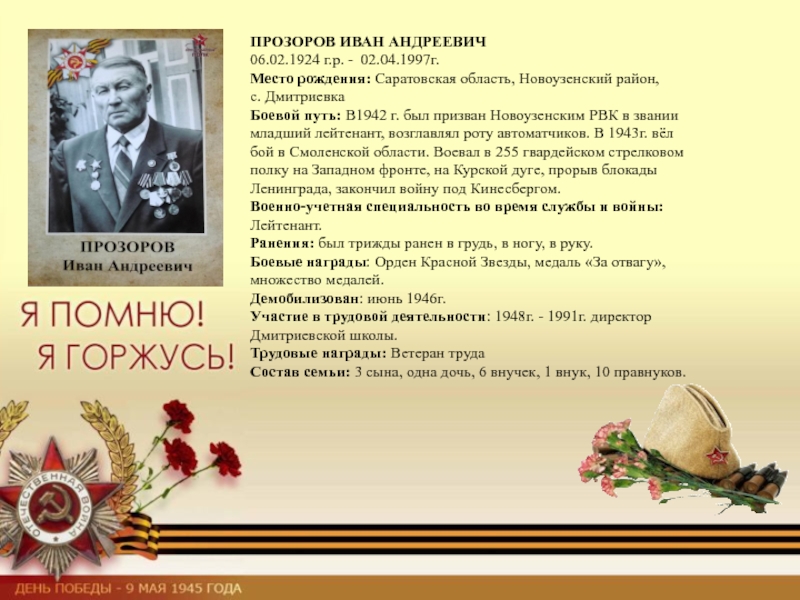Демобилизован: 11.05.1945г.