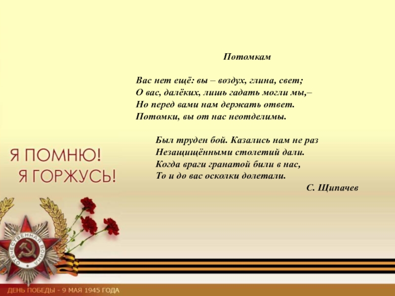 Слайд 8Потомкам