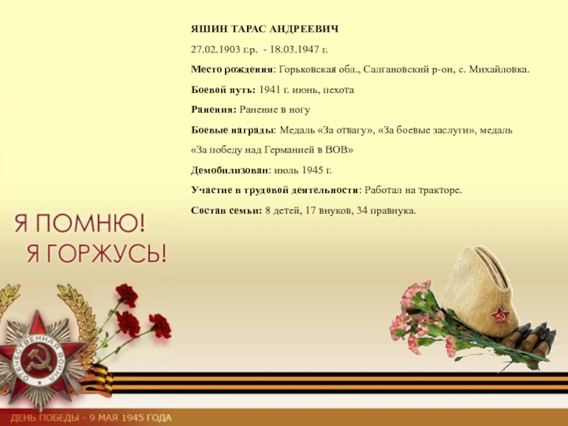 Демобилизован: сентябрь 1945 г.