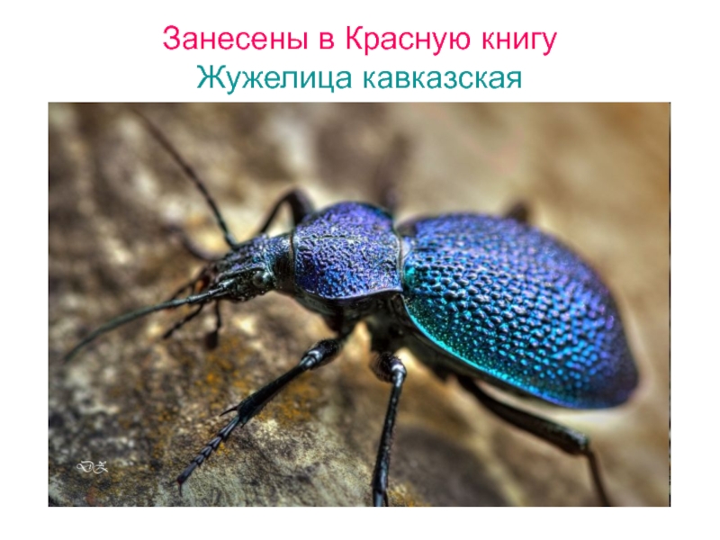 Слайд 14Занесены в Красную книгу Жужелица кавказская