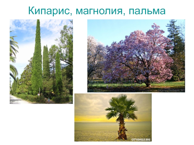 Слайд 4Кипарис, магнолия, пальма