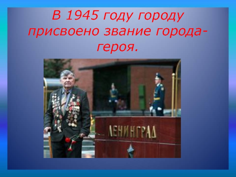 Слайд 13В 1945 году городу присвоено звание города-героя.