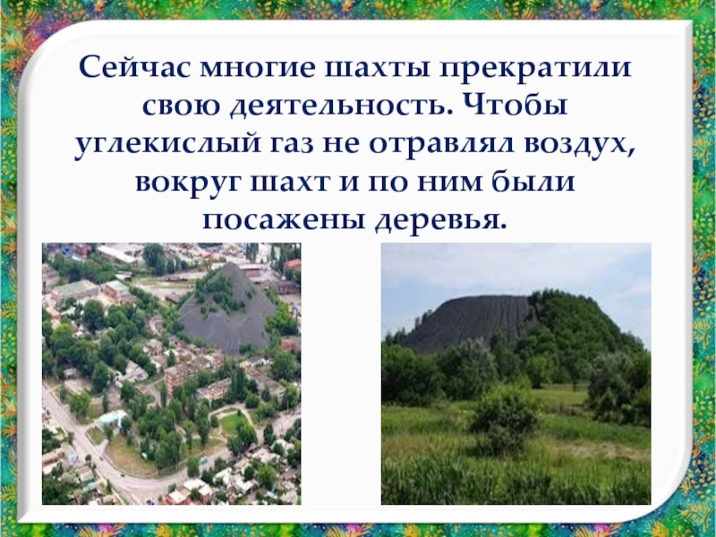 Слайд 8Сейчас многие шахты прекратили свою деятельность. Чтобы углекислый газ не отравлял