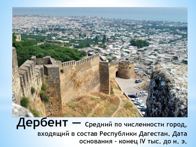 Слайд 8Дербент — Средний по численности город, входящий в состав Республики Дагестан.