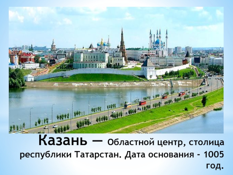 Слайд 6Казань — Областной центр, столица республики Татарстан. Дата основания - 1005