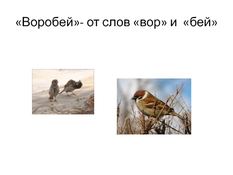 Слайд 31«Воробей»- от слов «вор» и «бей»