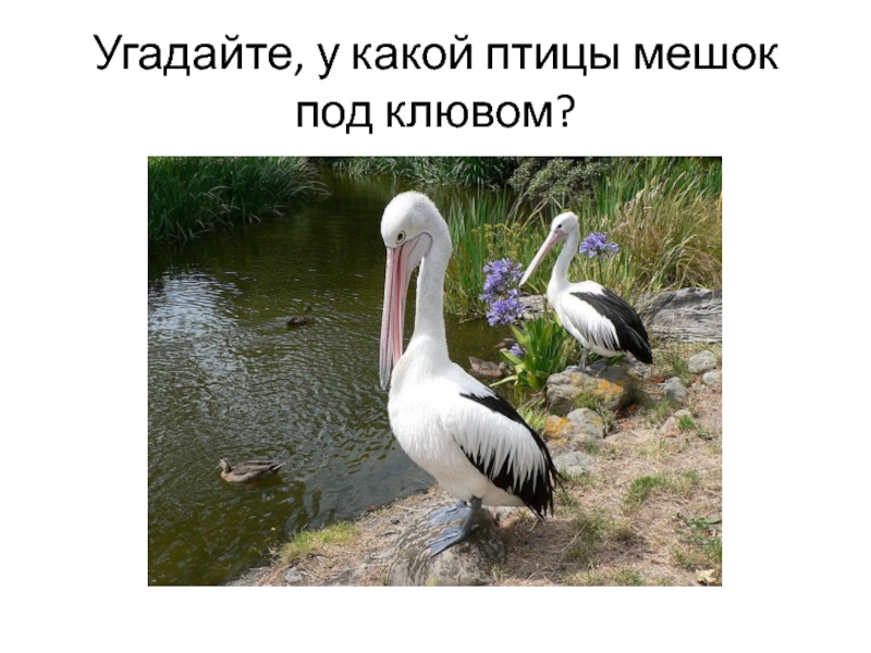 Слайд 9Угадайте, у какой птицы мешок под клювом?