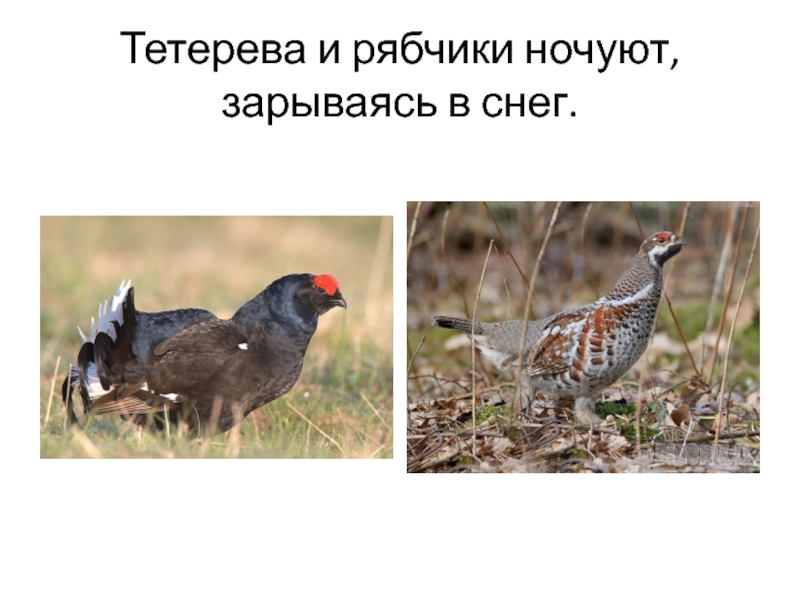 Слайд 18Тетерева и рябчики ночуют, зарываясь в снег.