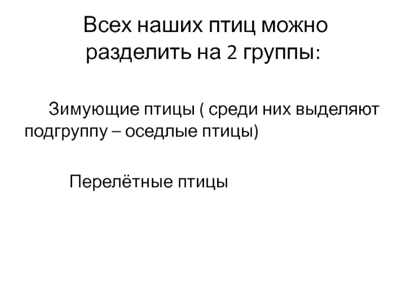 Слайд 19 Всех наших птиц можно разделить на 2 группы: