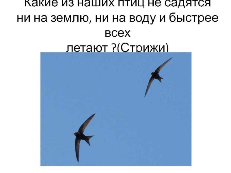 Слайд 13Какие из наших птиц не садятся ни на землю, ни на
