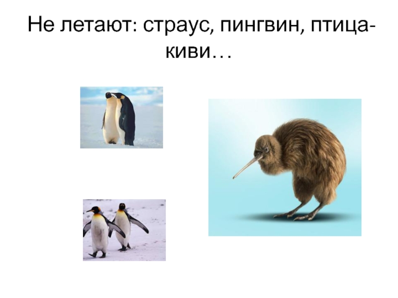 Слайд 14Не летают: страус, пингвин, птица-киви…