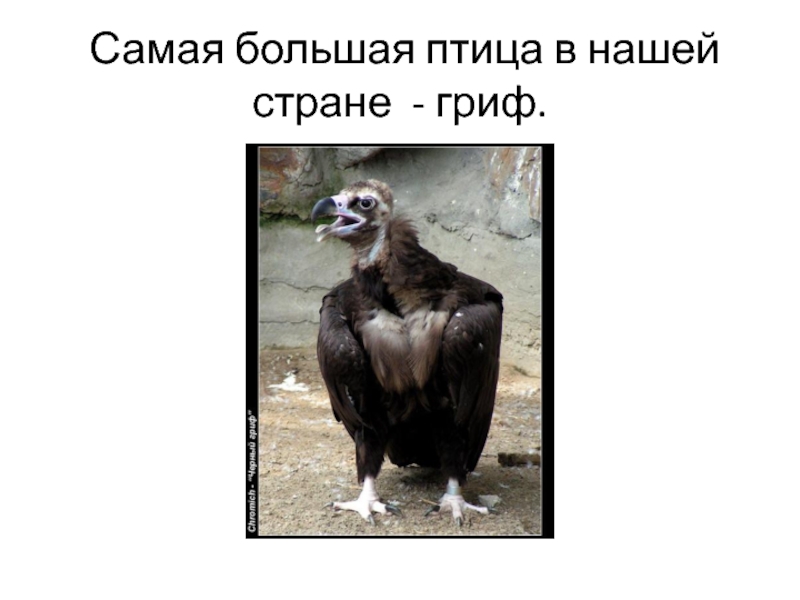 Слайд 7 Самая большая птица в нашей стране - гриф.