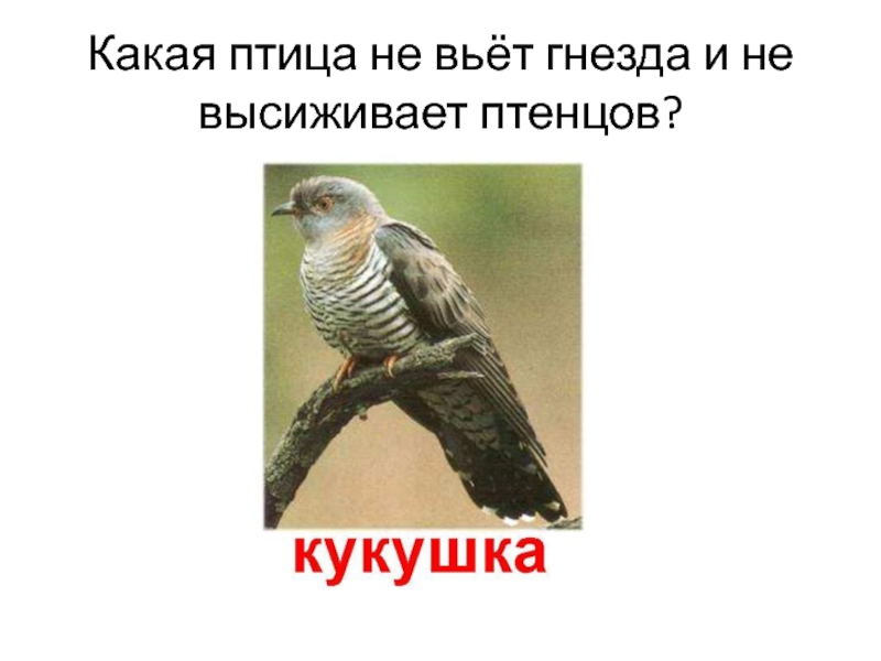 Слайд 15Какая птица не вьёт гнезда и не высиживает птенцов?