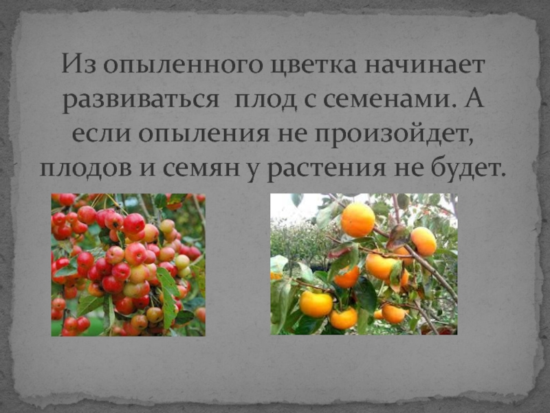 Слайд 12Из опыленного цветка начинает развиваться плод с семенами. А если опыления