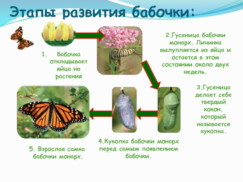 3.Гусеница делает себе твердый кокон, который называется куколка.