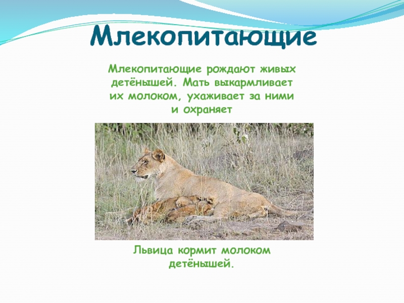 Львица кормит молоком детёнышей.