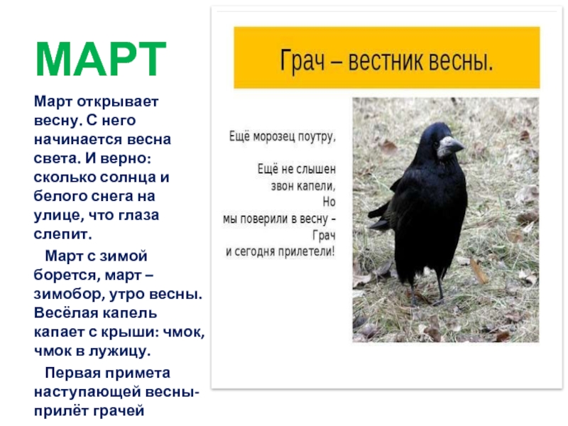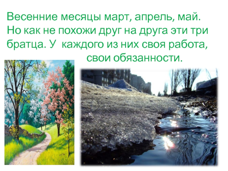 Слайд 10Весенние месяцы март, апрель, май. Но как не похожи друг на