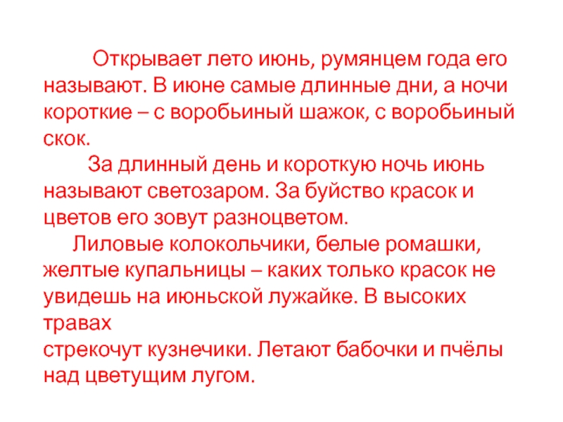 Слайд 16 Открывает лето июнь, румянцем года его
