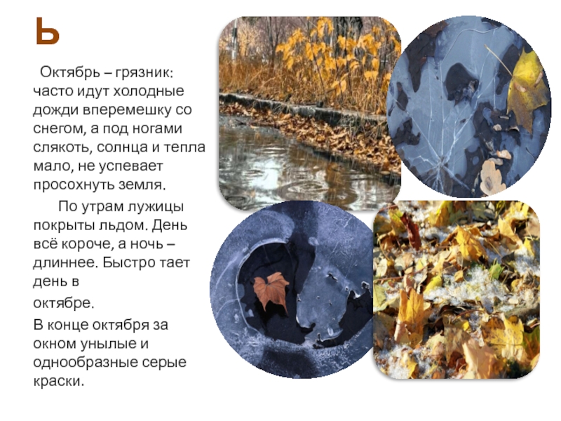 Октябрь – грязник: часто идут холодные дожди вперемешку со снегом,