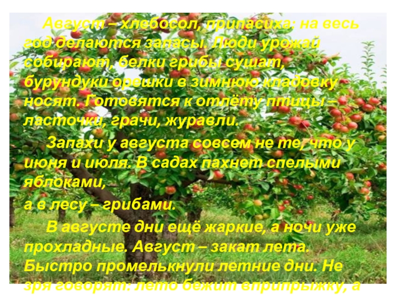 Слайд 20 Август – хлебосол, припасиха: на весь год делаются