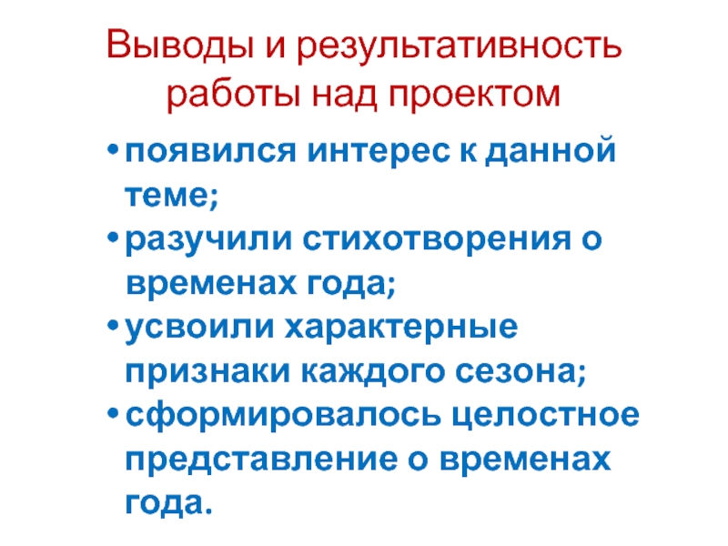 сформировалось целостное представление о временах года.