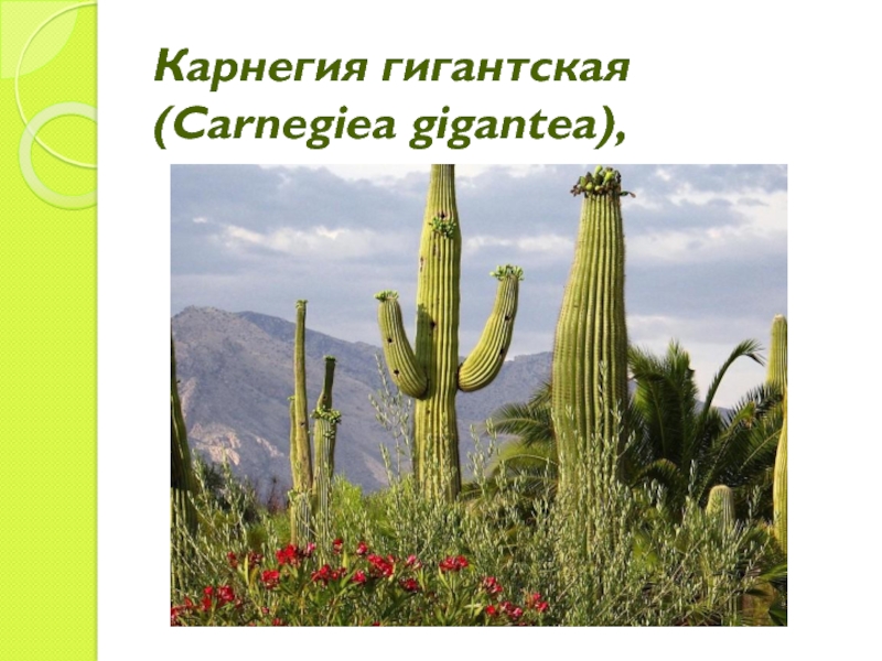 Слайд 10 Карнегия гигантская (Сагуаро) ещё одно удивительное растение семейства Кактусовых. Самой удивительной