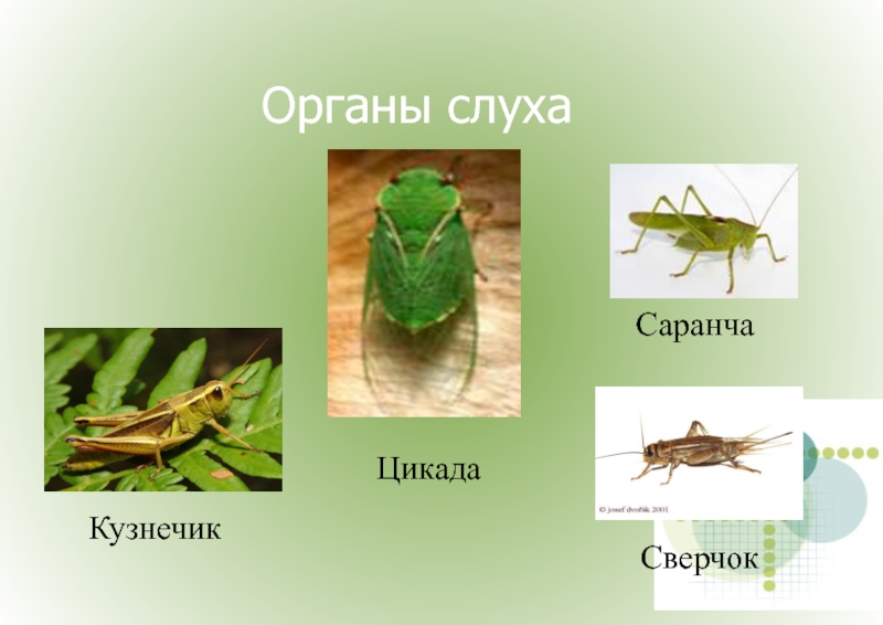 Органы слуха  Кузнечик  Саранча   Цикада   Сверчок