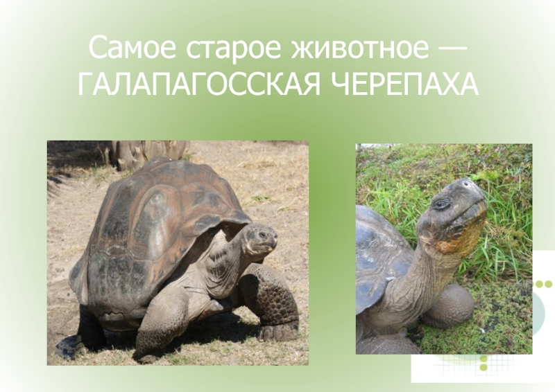Слайд 20Самое старое животное — ГАЛАПАГОССКАЯ ЧЕРЕПАХА