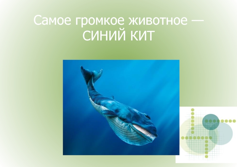 Слайд 18Самое громкое животное — СИНИЙ КИТ