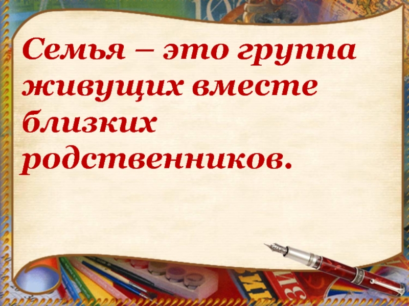 Слайд 2Семья – это группа живущих вместе близких родственников.