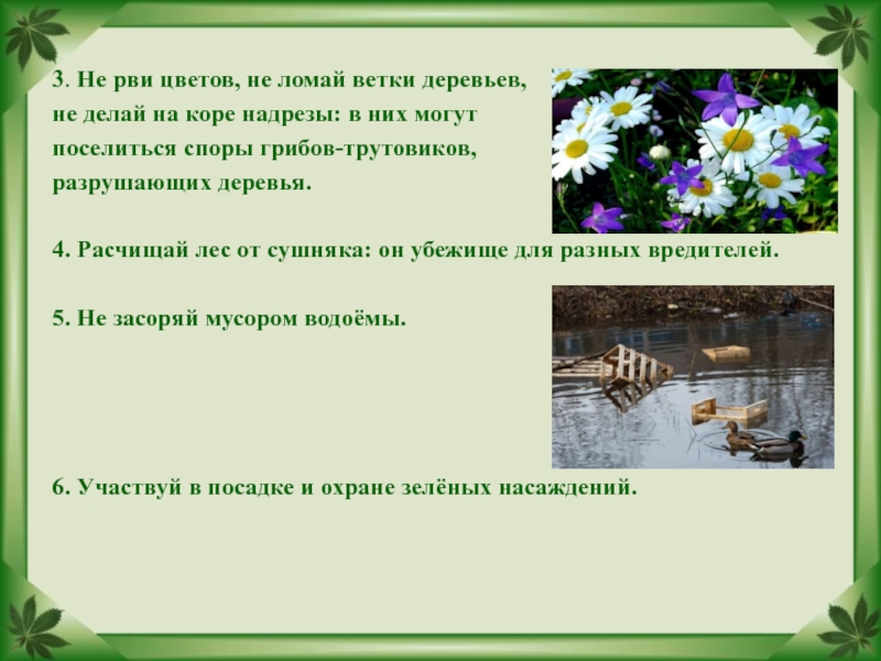 Слайд 293. Не рви цветов, не ломай ветки деревьев,