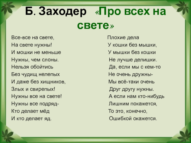 Слайд 3Б. Заходер «Про всех на свете»