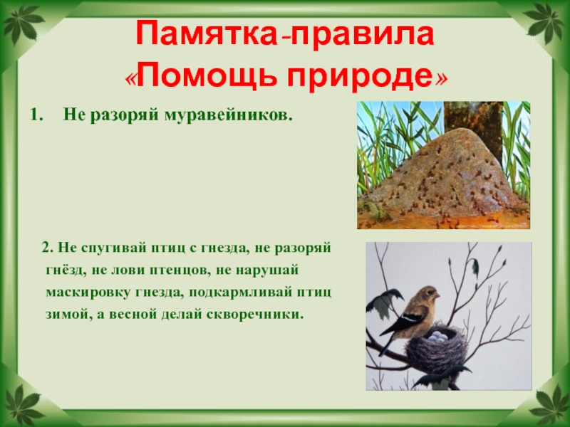 2. Не спугивай птиц с гнезда, не разоряй