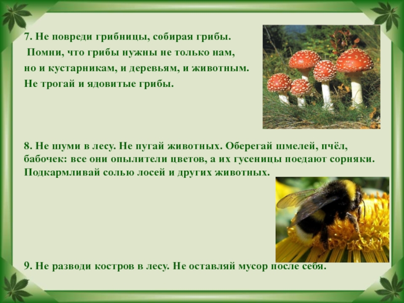 Слайд 307. Не повреди грибницы, собирая грибы.