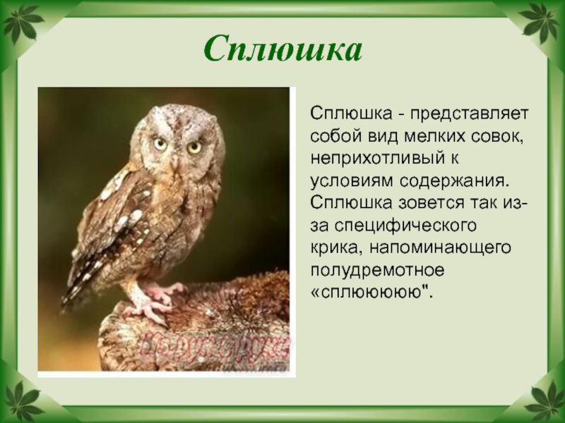 Сплюшка зовется так из-за специфического крика, напоминающего полудремотное «сплююююю".