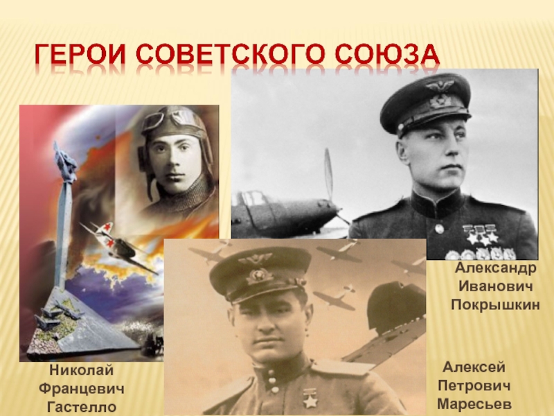 Николай Францевич ГастеллоАлександр Иванович ПокрышкинАлексей Петрович Маресьев