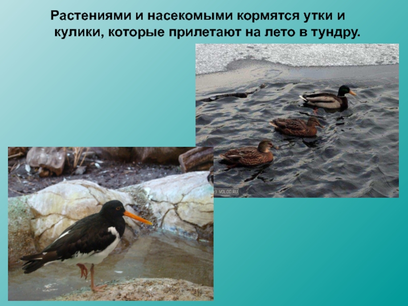 Слайд 31Растениями и насекомыми кормятся утки и