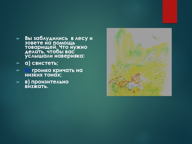 Слайд 51Вы заблудились в лесу и зовете на помощь товарищей. Что нужно