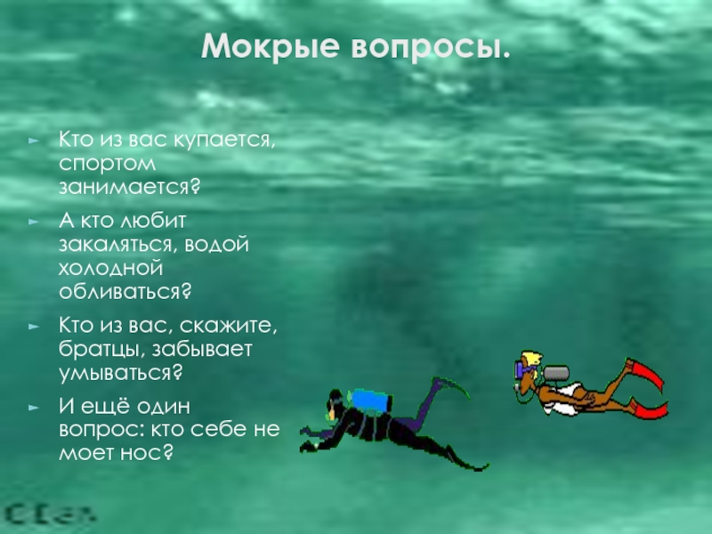 Слайд 11Мокрые вопросы.