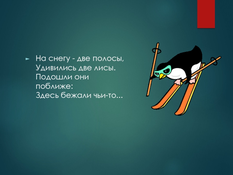 Слайд 40На снегу - две полосы,