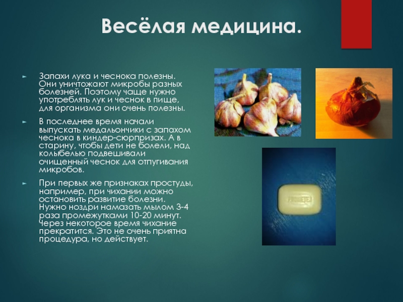 В последнее время начали выпускать медальончики с запахом чеснока в киндер-сюрпризах. А в старину, чтобы дети не болели, над колыбелью подвешивали очищенный чеснок для отпугивания микробов.