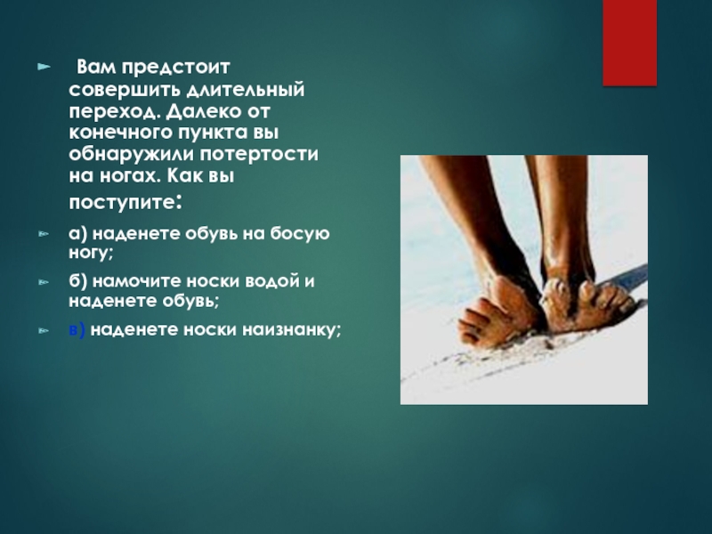 Слайд 48 Вам предстоит совершить длительный переход. Далеко от конечного пункта вы