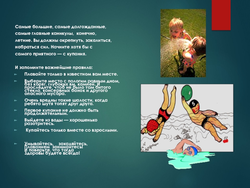 Купайтесь только вместе со взрослыми.