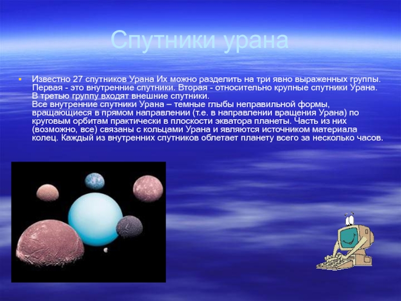 Первая - это внутренние спутники: Наяда, Таласса, Деспина, Галатея, Ларисса, Протеус, вторая - Тритон и Нереида, и третья - 5 внешних спутников S/2002 N1, S/2002 N2, S/2002 N3, S/2002 N4, S/2003 N1.