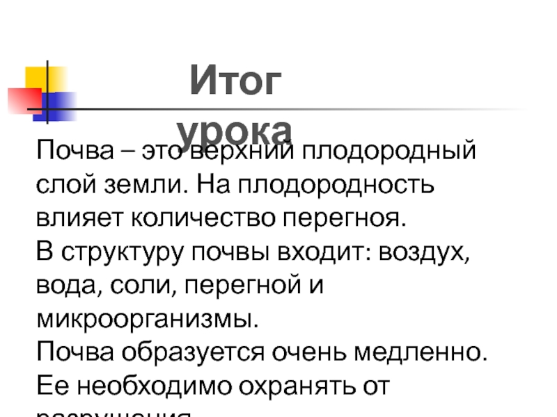 Почва образуется очень медленно. Ее необходимо охранять от разрушения.