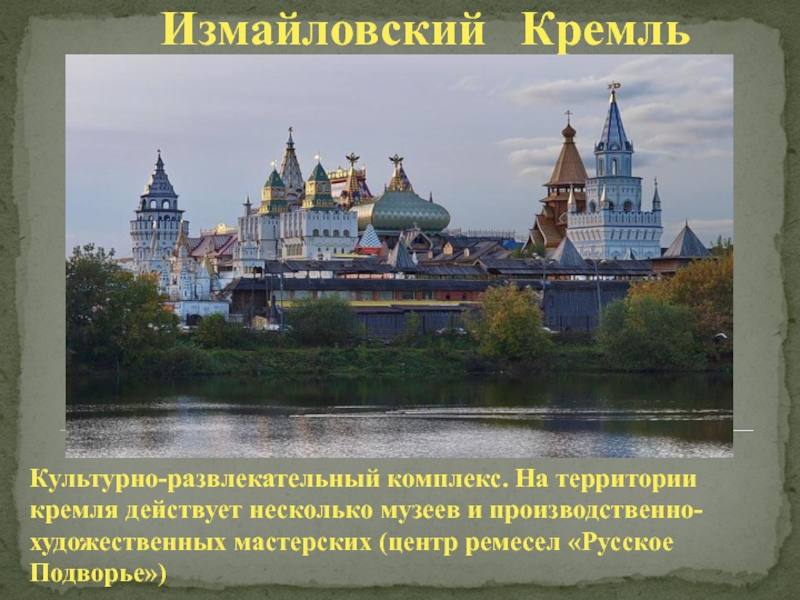 Культурно-развлекательный комплекс. На территории кремля действует несколько музеев и производственно-художественных мастерских