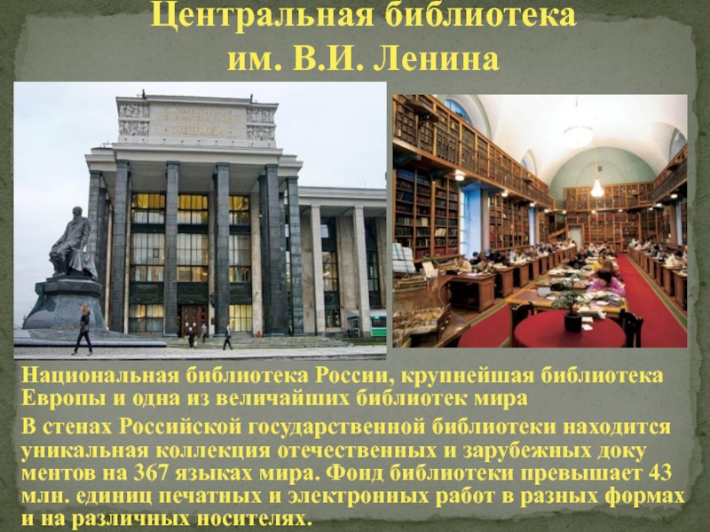 Национальная библиотека России, крупнейшая библиотека Европы и